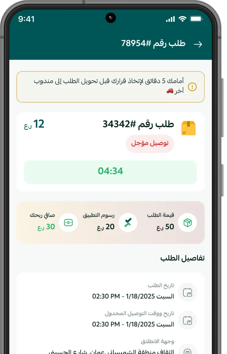 للمستخدمين الذين لا يحتاجون إلى التوصيل الفوري، يتيح التطبيق اختيار توصيل عادي أو مؤجل بحسب الحاجة.